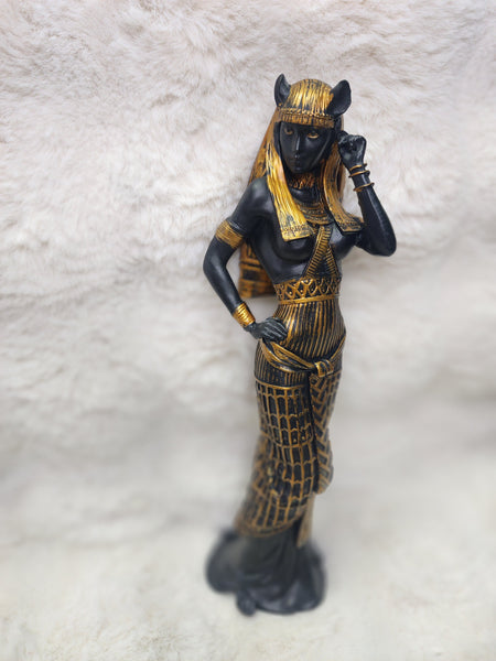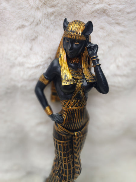 Graceful yet powerful, this Bastet statue honors the ancient Egyptian goddess of protection, home, fertility, and sacred feminine energy. Bastet is revered as a guardian of the household, a protector against negative forces, and a symbol of joy, balance, and independence.