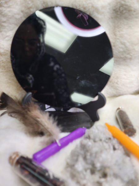 Place your Obsidian Scrying Mirror on your altar or sacred space, or use it during ritual to receive guidance and deepen your intuition. It serves as both a mystical tool and a striking decor piece that embodies mystery, power, and timeless magick.
