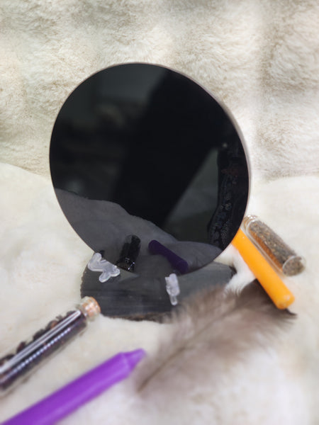 Place your Obsidian Scrying Mirror on your altar or sacred space, or use it during ritual to receive guidance and deepen your intuition. It serves as both a mystical tool and a striking decor piece that embodies mystery, power, and timeless magick.