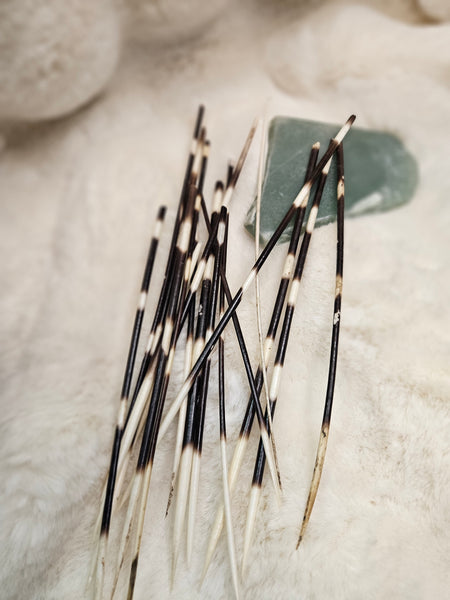 Porcupine quills are powerful tools of protection and defense in magickal practice. Just as the porcupine uses its quills to ward off predators, the quill holds strong energy for creating spiritual boundaries and shielding oneself from negativity, psychic attack, or harmful intentions.