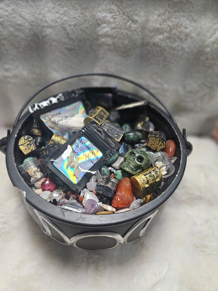 No two scoops are ever the same — you may uncover anything from amethyst chips and obsidian ravens to tiny bone curiosities and crystal surprises perfect for your altar, spell jars, or collection.