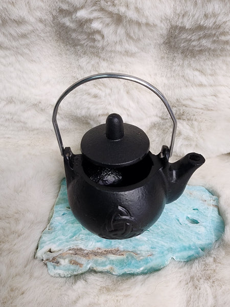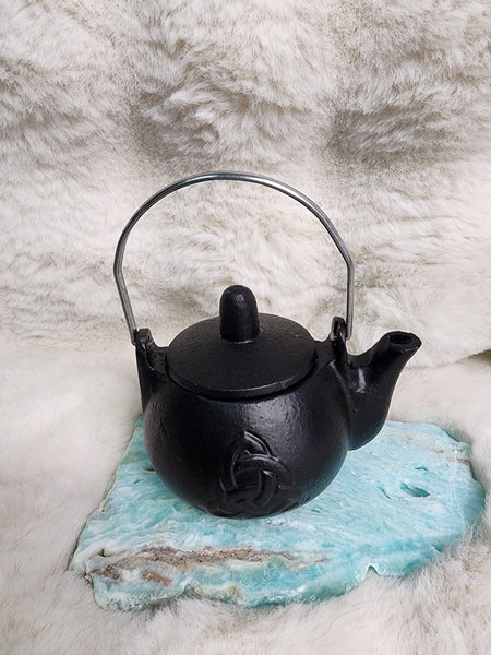 This cast iron kettle features the sacred Triquetra symbol, representing unity, protection, and the interconnected nature of mind, body, and spirit. Long associated with balance, eternity, and sacred cycles, the triquetra brings a sense of harmony and spiritual continuity to any ritual space.